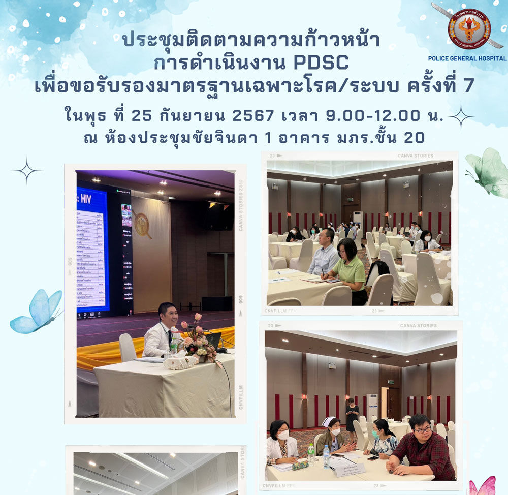 วันพุธที่ 25 กันยายน 2567 เวลา 09:00 - 12:00 น. ณ ห้องประชุมชัยจินดา 1 อาคาร มภร. ชั้น 20 โรงพยาบาลตำรวจ