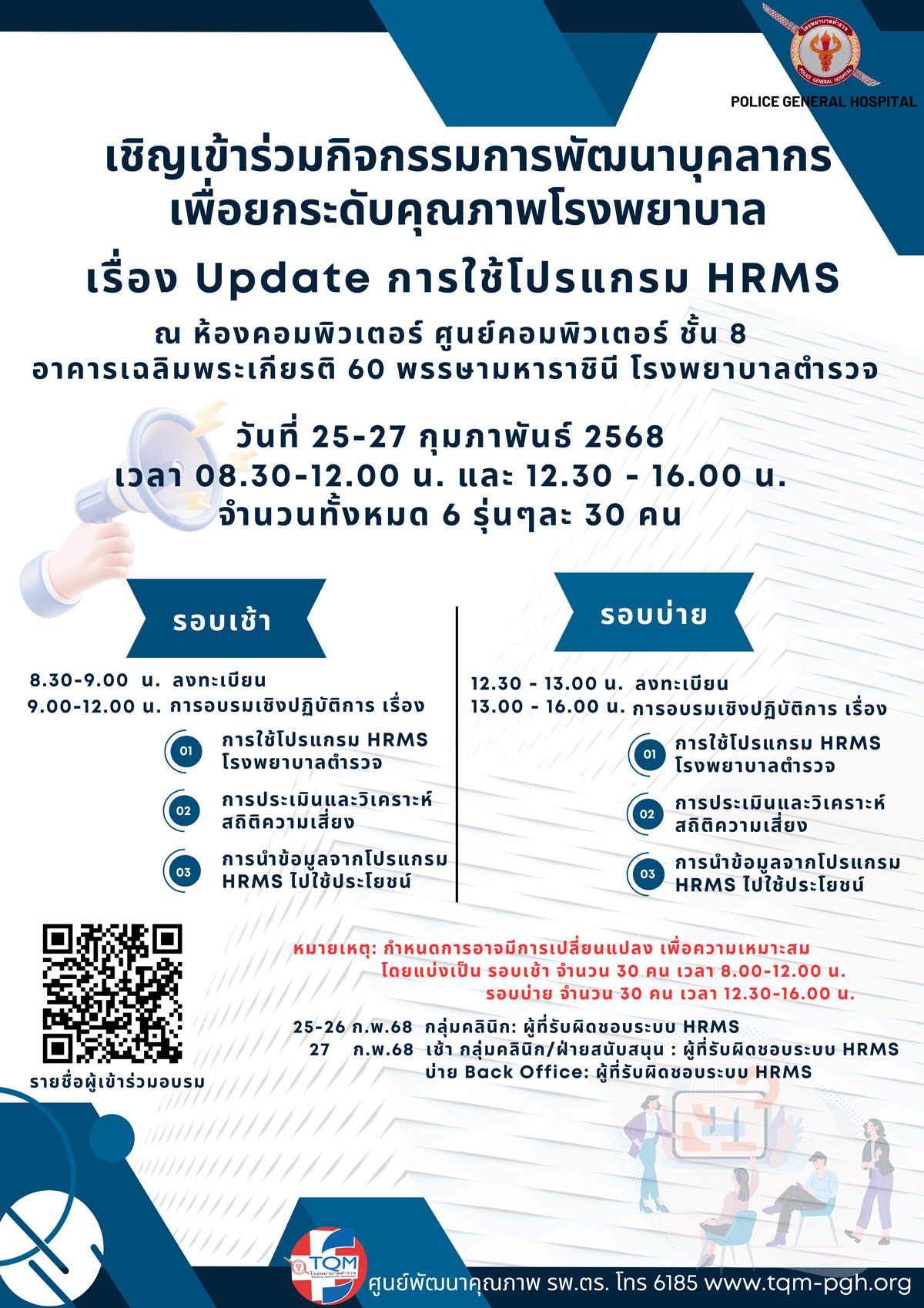 วันที่ 25-27 กุมภาพันธ์ 2568 เวลา 08.30-12.00 น. และ 12.30 - 16.00 น.