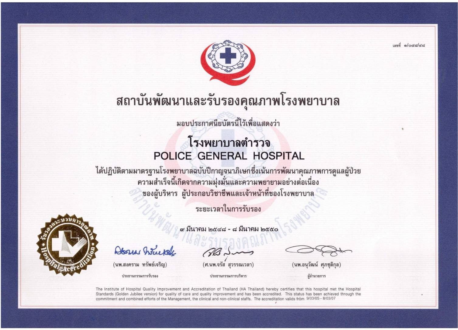 โรงพยาบาลตำรวจ "เป็นสถาบันการแพทย์ตำรวจ ที่มีความเป็นเลิศระดับสากล"
